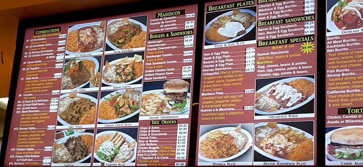 - Enchiladas: Choose from classic options such as Enchiladas Suiza, Shrimp Enchiladas, or indulge in Chicken Enchiladas De Mole, all affordably priced.